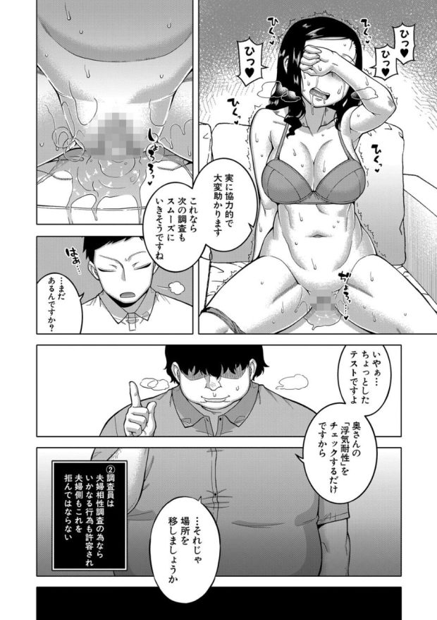 突如夫婦仲調査員として選ばれた主人公が、夫婦仲調査と称して様々な人妻を●す話